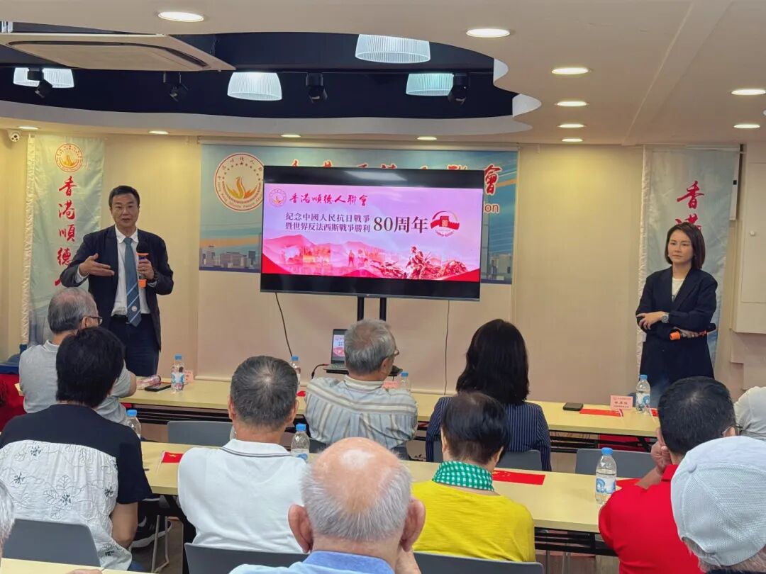 2025年9月3日上午,在順德區委統戰部的指導下,香港順德人聯會和順德區內地港人聯誼會分別在香港和順德組織舉辦「紀念中國人民抗日戰爭暨世界反法西斯戰爭勝利80周年」的盛大閱兵儀式。 兩地會場氣氛莊重而熱烈,同胞們共同見證了這一具有歷史意義的盛大慶典,透過屏幕感受國家強盛的磅礡力量,凝聚愛國情懷。