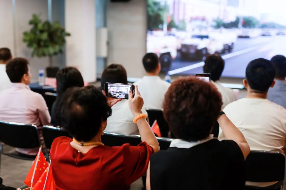 在順德,順德區委統戰部舉辦“鳳韻同心行——觀看閱兵儀式活動”。順德區內地港人聯誼會常務副主席陳卓謙、副主席葉承殷、伍建南、周耀昌、嚴莉智、談嘉傑、梁偉章共60余名順德台港澳僑及留學生代表共同一起觀看了紀念中國人民抗日戰爭暨世界反法西斯戰爭勝利80周年閱兵儀式的直播盛況。順德區委常委、統戰部部長梁偉沛,區委統戰部常務副部長區植朋,區僑聯主席吳蔚,區僑聯副主席人選歐陽學出席了本次活動。